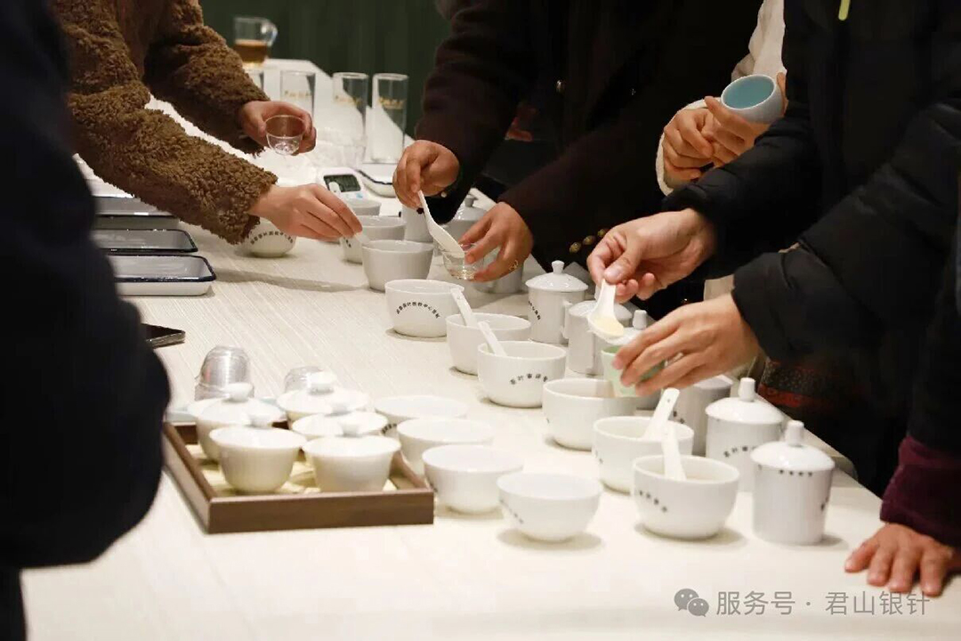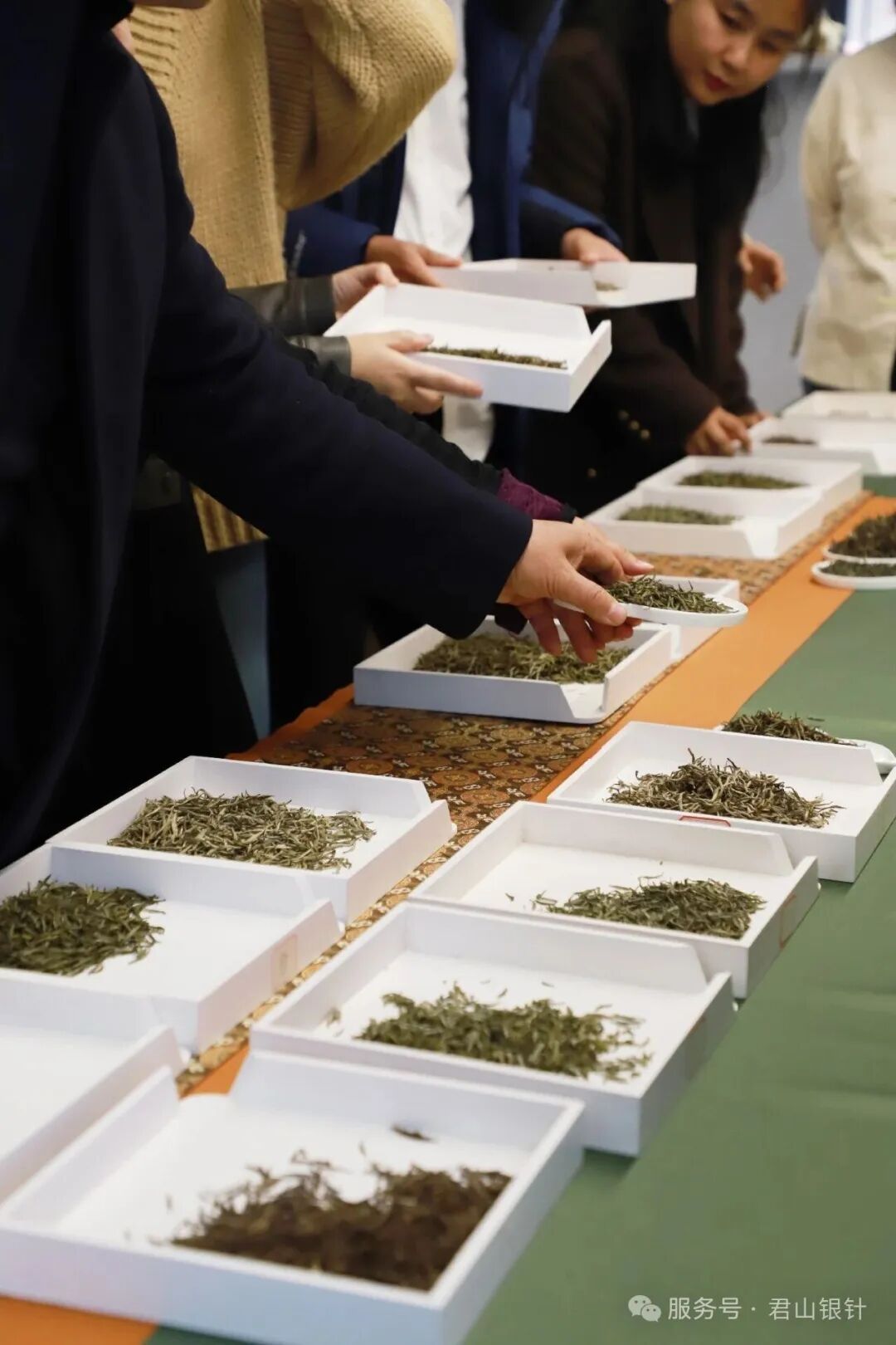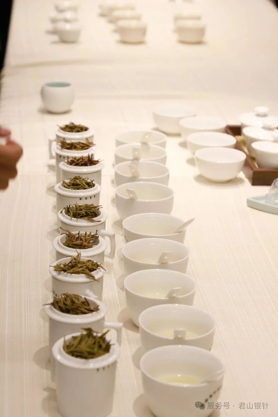 研討會特別設置了“密碼審評”環(huán)節(jié),對各參會單位提供的君山銀針樣品進行盲評。在公平、公正的氛圍中,專家及各企業(yè)代表從外形、湯色、香氣、滋味、葉底等多維度進行專業(yè)品鑒與熱烈討論。